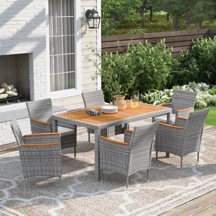 This dining set has transformed my patio into an inviting space. The acacia wood tabletop adds a refined touch, making every meal feel special.The comfort of the seating surprised me! High-density rebound sponge cushions make for relaxing afternoons in the sun. A great purchase overall!